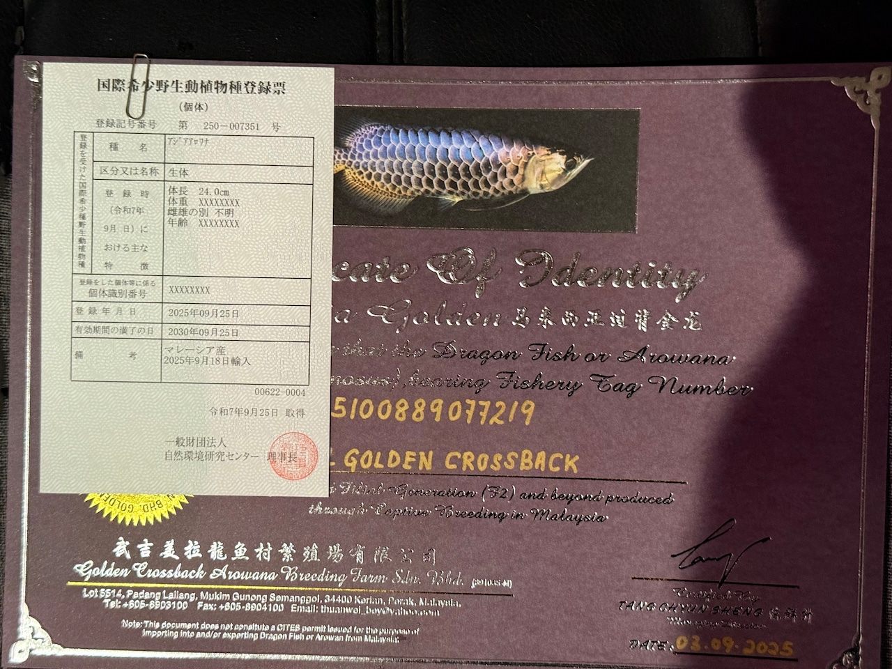 ※アジアアロワナは種の保存法に基づき、所定の登録機関に所有者変更の届け出が必要です