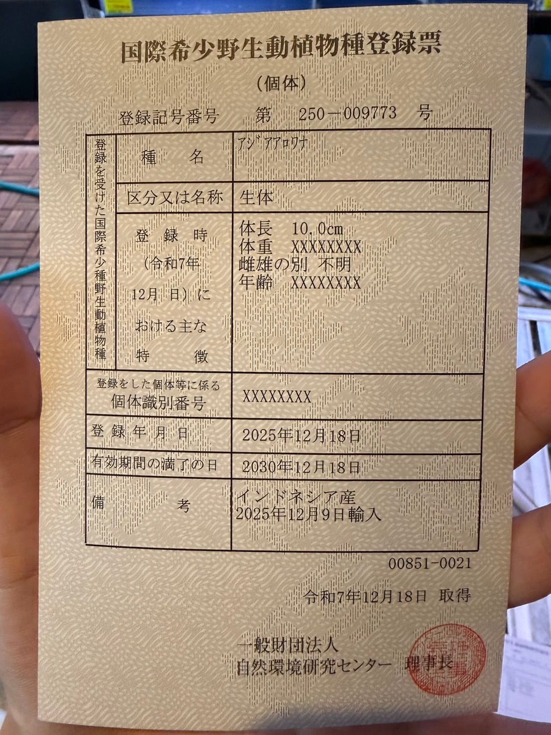 ※アジアアロワナは種の保存法に基づき、所定の登録機関に所有者変更の届け出が必要です