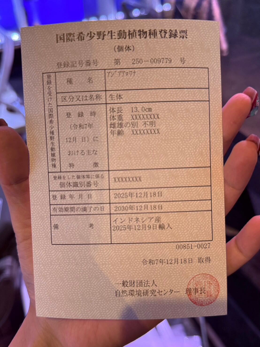 ※アジアアロワナは種の保存法に基づき、所定の登録機関に所有者変更の届け出が必要です