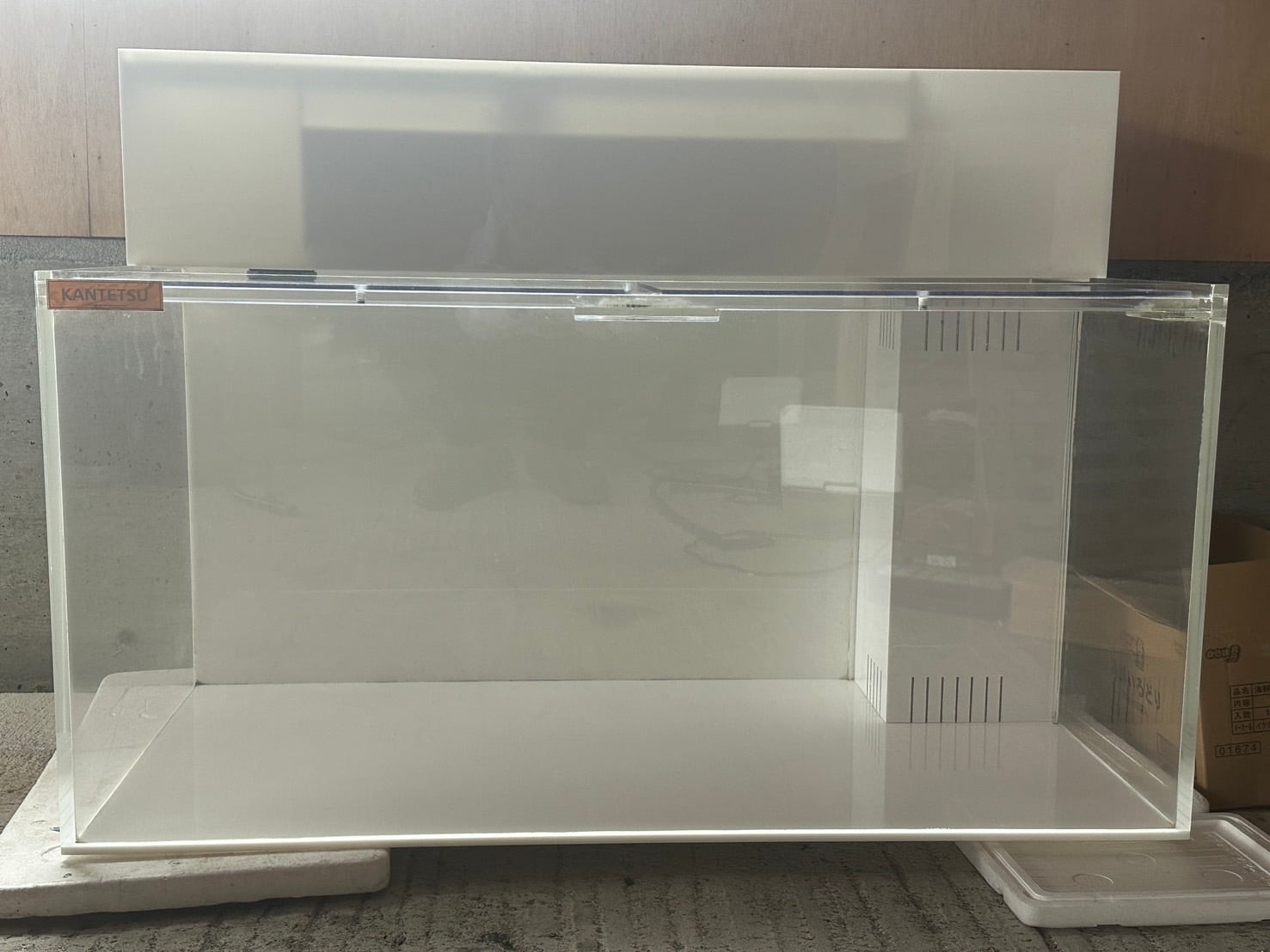 カンテツの1200×600×600底背面白水槽