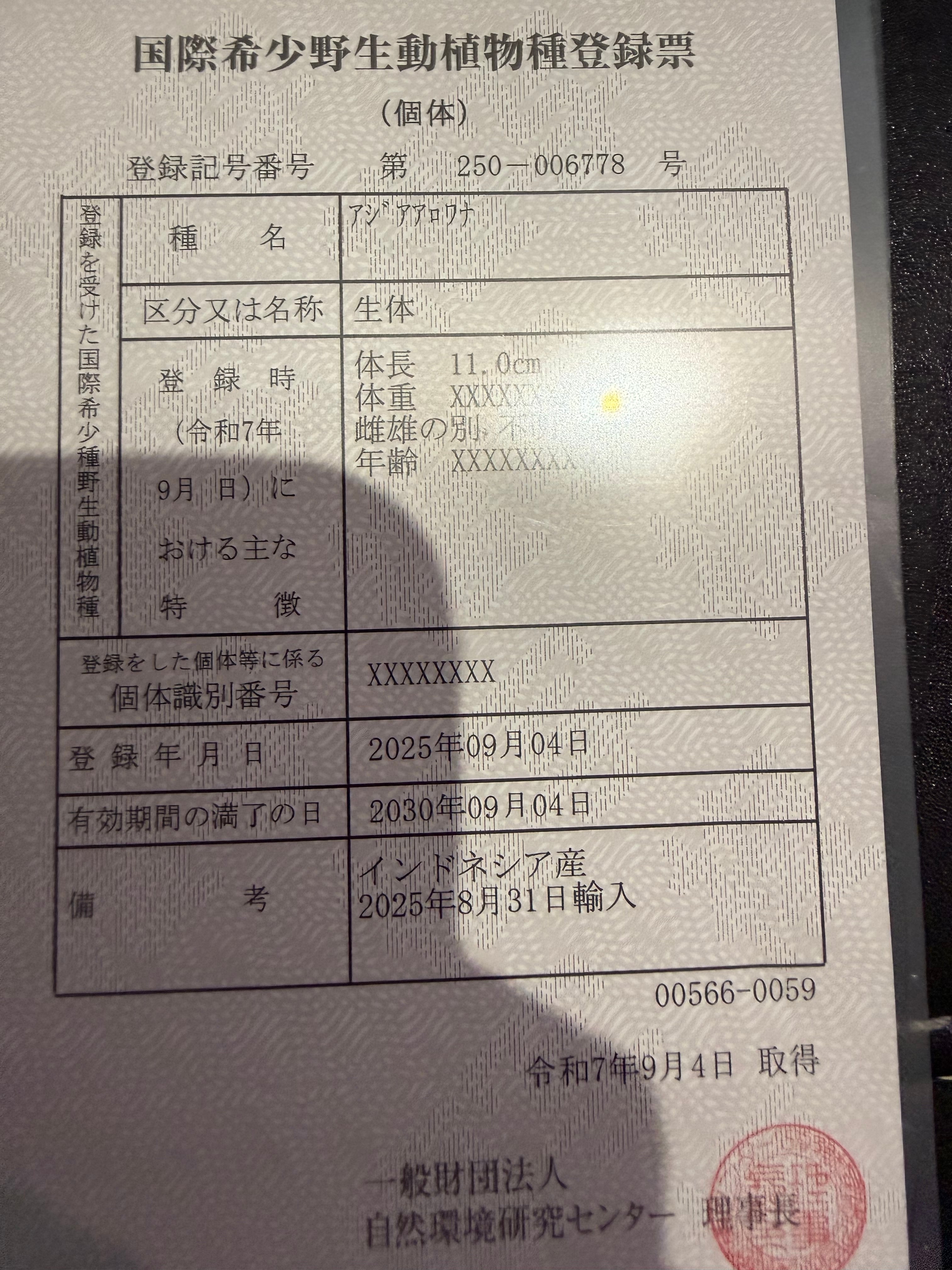 ※アジアアロワナは種の保存法に基づき、所定の登録機関に所有者変更の届け出が必要です