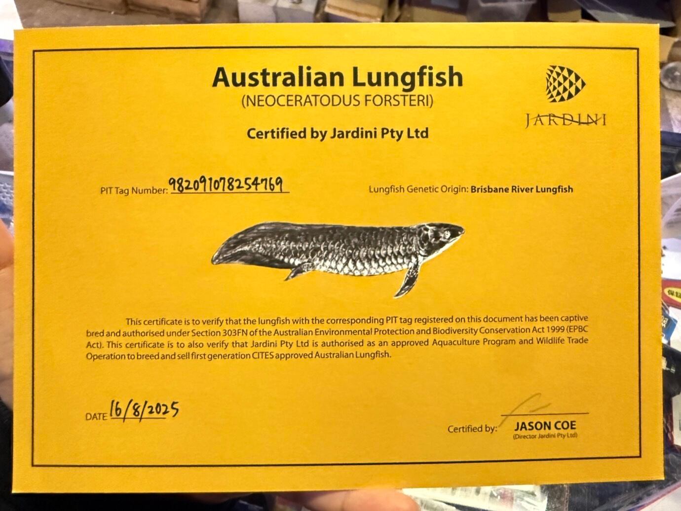 769 ネオケラトドゥス・フォルステリ 12㎝前後 パインリバー 証明書あり 2310